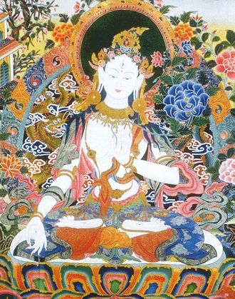 The practice of White Tara is extremely important to His Eminence Garchen Rinpoche. The practice the Gar Trinley Yongkhyab Ling sangha engage in is called ‘The Refined Drop of Immortality; a Longevity Mandala Practice of Arya Tara, the Wish Granting Chakra,’ and was composed by our group’s namesake, the previous incarnation of His Eminence, Gar Trinley Yongkhyab. As per the instructions of His Eminence, and the Venerable Dorzin Dhondrup Rinpoche, the practice of White Tara is central to our sangha. Like any deity practice within Tibetan Vajrayana Buddhism, the purpose of White Tara practice is to realise our enlightened nature -that is, Buddha nature- for the benefit of all sentient beings. As White Tara is a manifestation of the Buddha’s enlightened activities, however, the practice also brings with it the special qualities of longevity and good fortune, as well as being a powerful means to dispel obstacles.